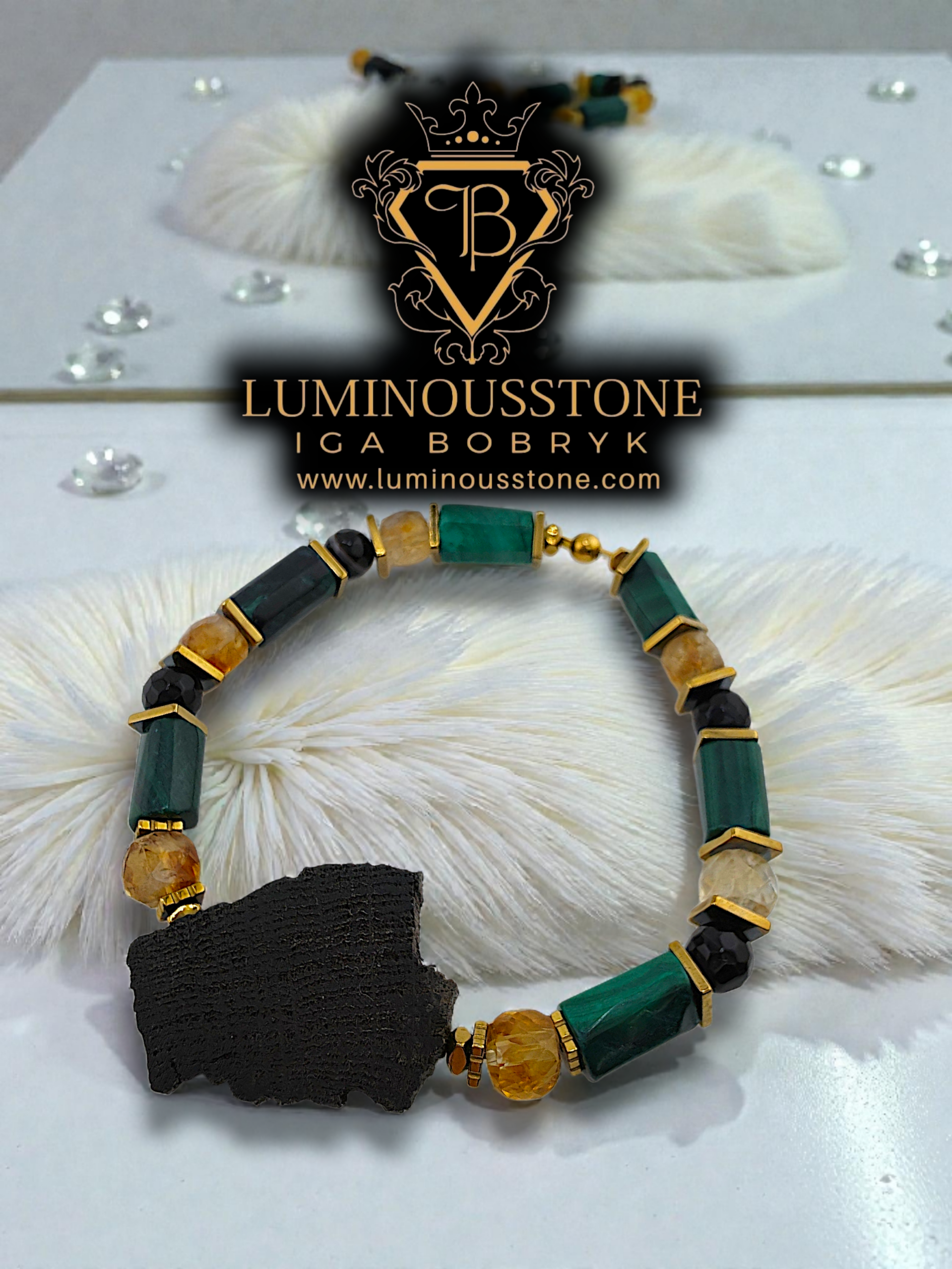 #LuminousStone #CrownOfSuccess #BraceletOfPower #Malachite #Citrine #BogOak #Luxury #AbundanceAndHistory #HandcraftedInDonegal